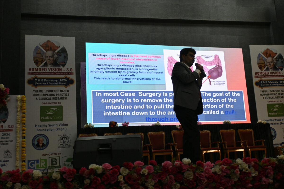 Dr. Ravi was invited to participate in Homeovision 3.0, Bhopal, following the successful event of Homeovision 2.0 held in Lucknow. This mega event was organized at the Pt. Khushilal Sharma Ayurvedic College Auditorium on 7–8 February 2026, where delegates from across India gathered, including students from Gujarat, Karnataka, Rajasthan, Uttar Pradesh, and Madhya Pradesh. Around 400 delegates assembled in the capital city of Bhopal with a thirst for knowledge and an eagerness to exchange ideas. Many prominent figures in the field of homeopathy were present at this august gathering, including central government officials and renowned professionals such as Dr. Rajat Chattopadhyay, Dr. Anand Chaturvedi, Dr. Kaur, Dr. B. N. Singh, Dr. A. K. Dwivedi, Dr. Pankaj, Dr. Pawan Pareekh, Dr Yashwant Patil, Dr. Chopra, Dr. S. K. Tiwari, Dr.A.K.Singh , Dr.S.P.Singh, Dr Juhi , Dr. S. Parveen Kumar, Dr. Bhosle, and Dr. Iqbal Quasim, among others. The occasion was also graced by State Cabinet Minister Vishwas Sarang, State Minister of AYUSH Inder Singh Parmar, MLA Bhagwan Das Sabnani, and MLA Dr. Tej Bahadur Chauhan. Dr. Ravi presented several remarkable cases from his evidence-based clinical practice, including cases of CSF rhinorrhea, Hirschsprung’s disease, chyluria, blepharospasm, and hemangioma, which greatly impressed the delegates. The highlight of his presentation was a live case demonstration of CSF rhinorrhea. A lady who had received online treatment from his clinic and recovered successfully wished to meet Dr. Ravi in person upon learning about his visit to Bhopal. She came on stage with her husband and shared their wonderful experience. The delegates raised several queries when they learned that none of the presented cases had received oral medication but were treated remotely through an innovative method of medicine transmission via hair. Many questions were asked regarding the modus operandi of this energy transmission method. Dr. Ravi patiently answered all the questions and encouraged participants to test and evaluate the method themselves. Even after the presentation, students gathered around him to resolve their queries regarding the technique. During the cultural evening, Dr. Ravi also sang a few songs, which were warmly appreciated by the delegates. Dr. Ravi expressed his sincere gratitude to Dr. Amit Nayak and Dr. Pooja Nayak for organizing such a wonderful event. He also promised to present new clinical cases in upcoming seminars.