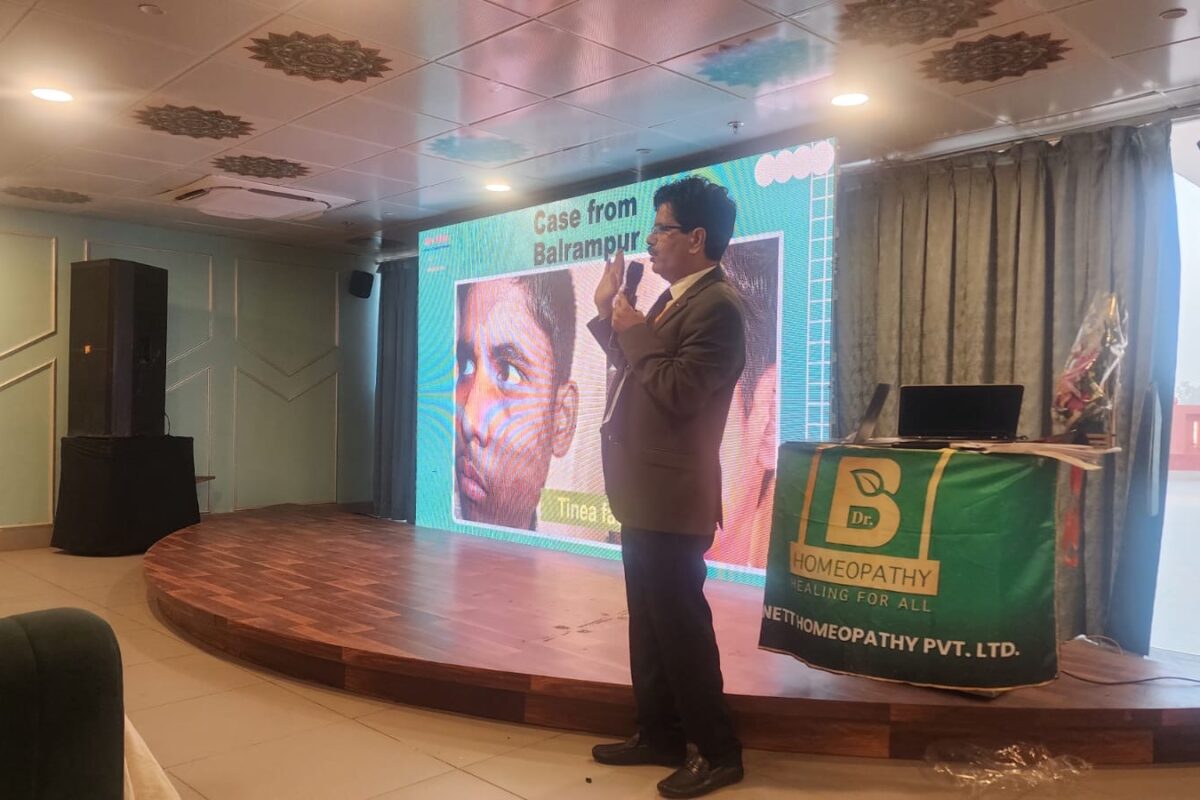 Dr. Ravi was invited to the Second National AYUSH Conference held in Ayodhya on 15 February 2025. In the first conference, which was organized in Gorakhpur, his work was highly appreciated by the delegates. At the Ayodhya conference, he presented his research on medicine energy transmission and shared many remarkable cases, including Lichen planus, Molluscum contagiosum, Hemangioma, scalp folliculitis, Vitiligo, Impetigo contagiosa, Tinea capitis, Buerger’s disease, CSF rhinorrhea, Blepharospasm, Hirschsprung’s disease, and Chyluria. He showcased the power of classical homeopathy, which was well received by the delegates. He was also felicitated by Dr. Anil Sharma Ji, a veteran homeopath and the head trustee of the Ram Janm Bhoomi Nyas.